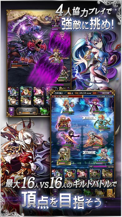 16人ずつのギルドを作ることによって、合戦のような激しいバトルを繰り広げることが可能となっております。自チームの勝利を収めるために、味方らを守りながら戦えます。
