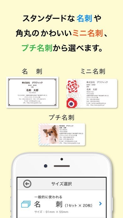 ミニサイズカードのプチ名刺3サイズから選べます。