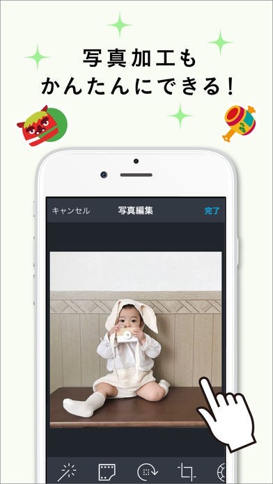 ポストカードに文字を追加する事が可能なので、お祝いのコメントや新年の挨拶を付け加えたい時に重宝します。貼り付けた写真の明度やコントラストが修正出来るのも特徴ですよ。
