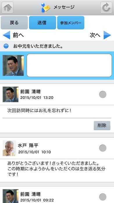 メンバーを選んでタップするだけでチャット利用も可能。細かい情報の共有も簡単!