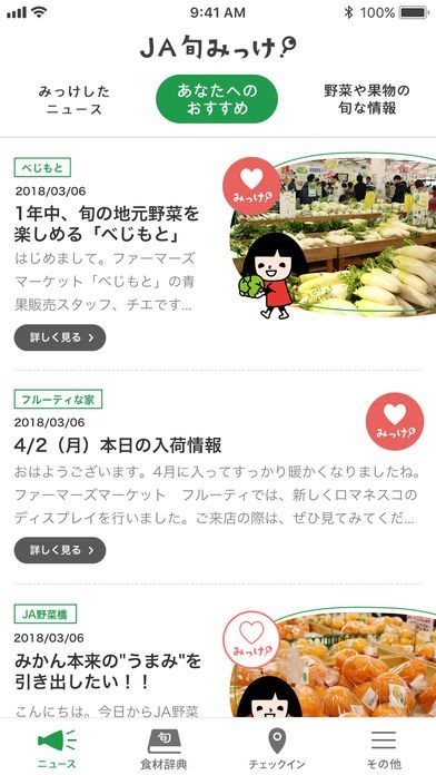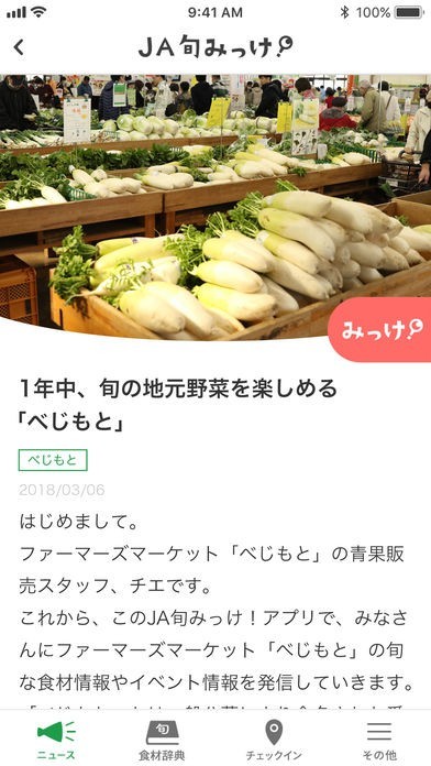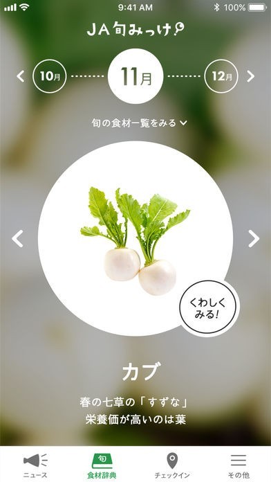 App Storeより引用JAやファーマーズマーケット(農産物直売所)には「旬」の情報が盛りだくさん。