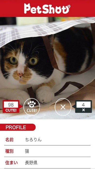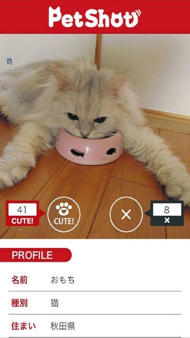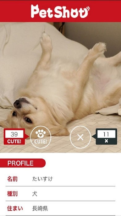 可愛いペット写真を見つけたらCUTEボタンを押すことができる