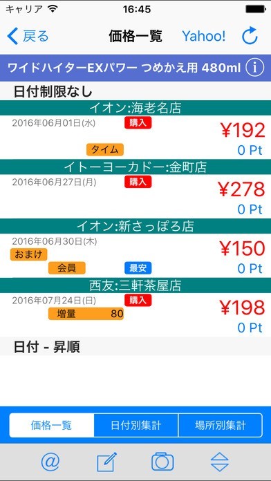 購入価格を手軽に記録!底値確認や価格参考に活躍!