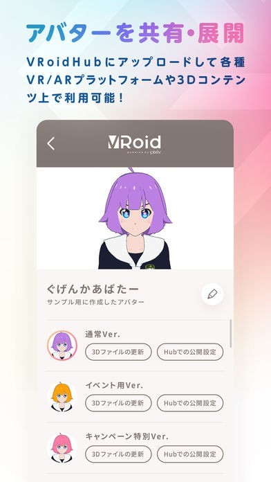 あなたが作ったアバターはいつでもVRoid Hubへアップロードすることができます。