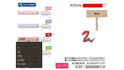 単位換算ゲーム「ヒルマンとたんいかいじゅう」のスクリーンショット