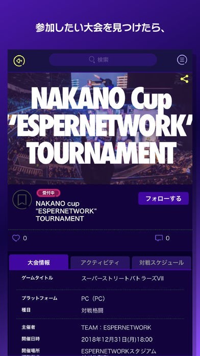 ・eSportsプレイヤー・eSportsイベントのフォロー