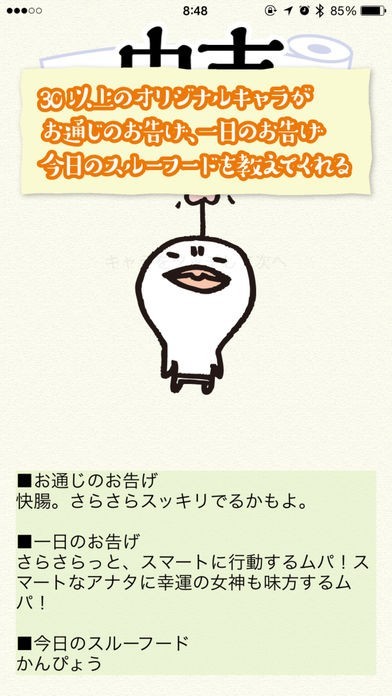 さらには今日のスルーフード(お通じ食材)をオリジナルキャラクターが