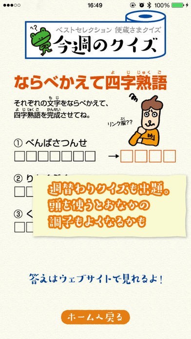 本家カレンダーでも大好評の便蔵さまクイズが週替わりで登場。