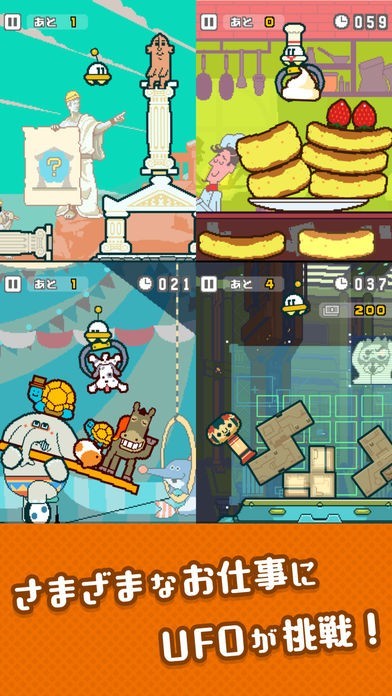 UFOが色々なお仕事の世界観がとても可愛くて楽しくプレイしています。操作もシンプルでやりやすいです。