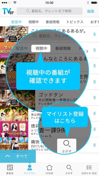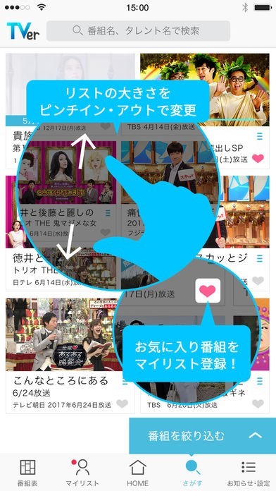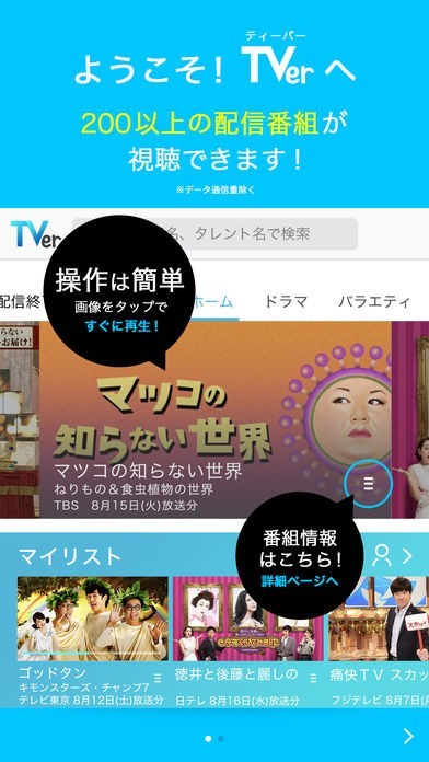 好きなTV番組をタップするだけ。見逃してしまった番組がみれるアプリ
