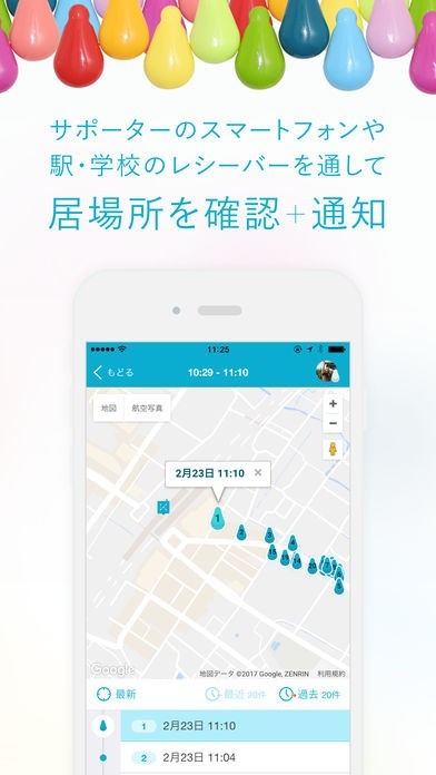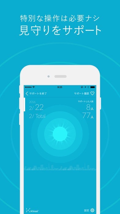 見守られる立場以外のユーザーは、サポーターとしてアプリを起動しておくだけで、近くに端末を持ったユーザーが通ったときの位置情報を送信することができ、ユーザーの居場所を知らせるサポートができます。