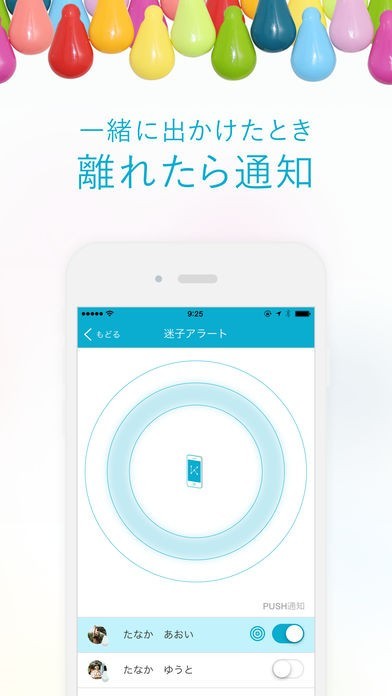 端末を持ったユーザーと見守る側のユーザーが一緒に出掛けた場合、両者の距離が一定以上離れるとアラートで知らせてくれるので、目を離したすきに迷子になってしまうリスクを減らせます。