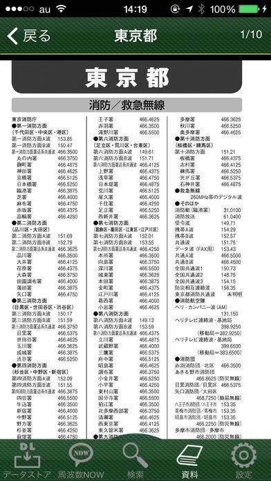 防災や航空など様々な周波数をスマートフォンで知ることができる