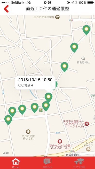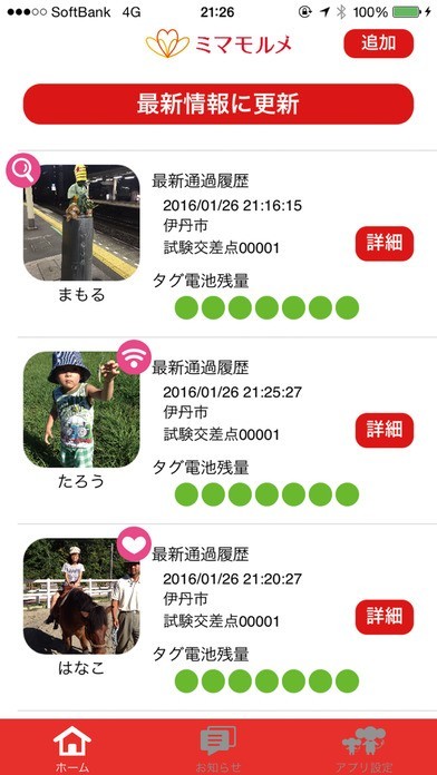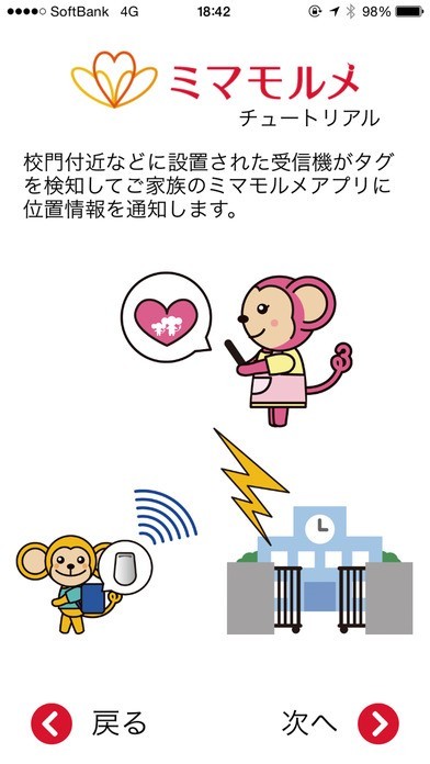 App Storeより引用校門付近などに設置された受信器が、ご家族がお持ちのタグを検知してこのアプリに位置情報を通知します。