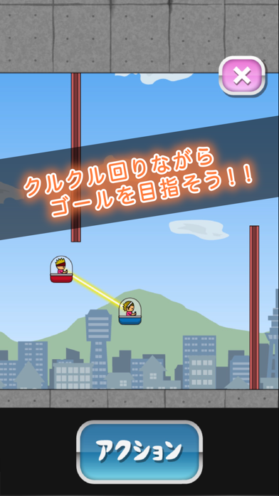 アクションボタンを押すごとに、赤と青のカプセルが交互に動きます。コースの状況を見ながらタイミング良くボタンをタップしてください。上手にタップするとカプセルが回りながら前に進みます。