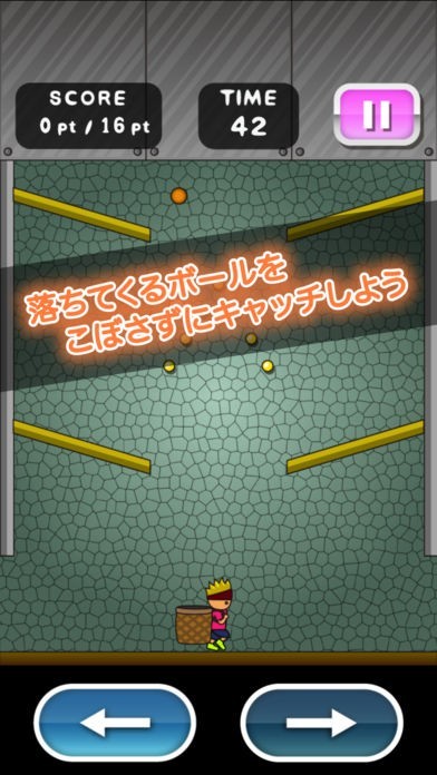 App Storeより引用ピンボールのように落ちてくるボールをキャッチするアクションゲームです。