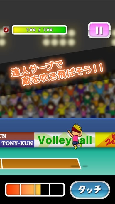 「タッチ」と書かれたボタンをタイミング良くタップすることによって、バレーボールを勢いよく相手にぶつけることができます。特殊な技術を持っている必要がないので、すぐにやり方を習得できます。