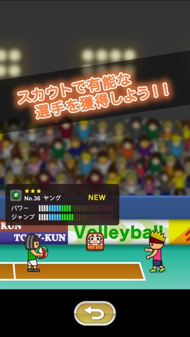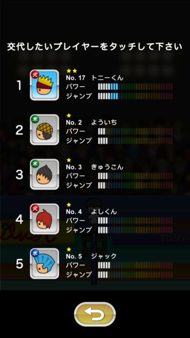 たくさんの選手を揃えることができます。ジャンプの高さ、力の強さなどが異なっているので、状況に応じた戦略を考える面白さを味わえるほか、やり込み要素が多いので長い時間遊べます。