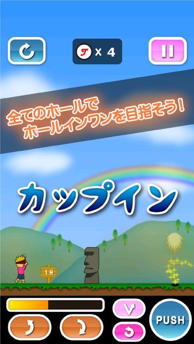 人気のゴルフゲームアプリの第五弾が「トニーくんのゴルフはじめました5」です。プレイヤーはゴルファーのトニーくんとなってすべてのステージでのホールインワンを狙ってボールをショットするゲームとなっています。遊び方は矢印ボタンでショットする角度を決めて、一回目のショットボタンをタップすることでパワーゲージが動くので、もう一度ショットボタンをタップしてゲージを止めるとボールを打ちます。角度とパワーを調整しながらホールインワンを目指します。