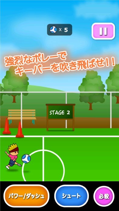 このアプリは、ボールを持った主人公が、そのまま相手の陣地を突き進んで、ゴール前まで進んで、シュートを決めて得点を稼ぐゲームです。マボロシのハットトリックも出せます。