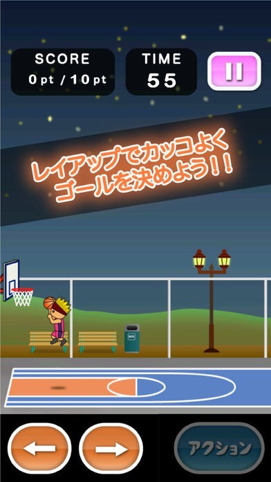 豪快なレイアップやシュートを決めたいという方におススメです。バスケをするなら豪快にゴールを決めたほうが爽快感があります。シュートをする際にアクションボタンを押すと力強いシュートが放てます。