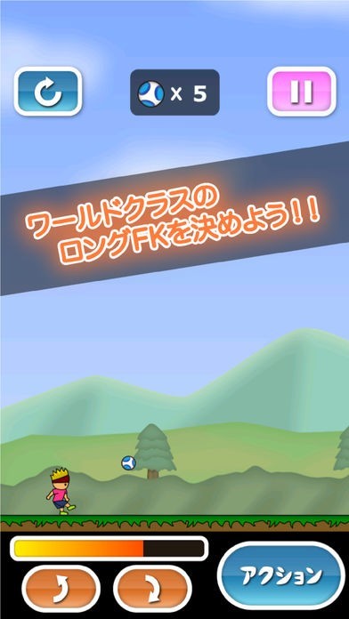 操作は簡単でボールを蹴るときの力を調節して角度を決めてボールを蹴るだけの簡単操作で遊べるサッカーアクションゲームです。 暇つぶしなどに利用すると丁度いい良いアプリです。