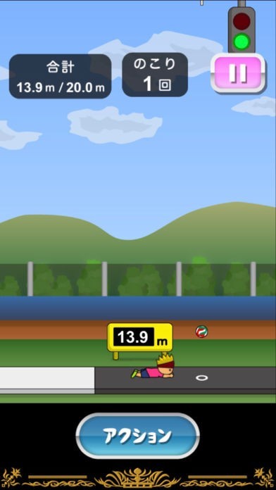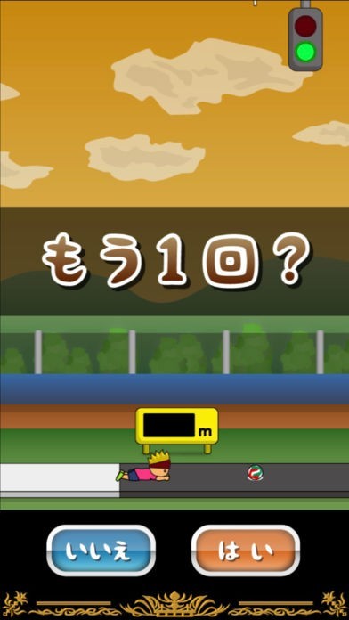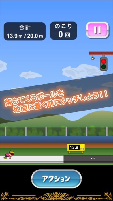 画面の右上には、トニー君の身体より大きな信号機がついています。赤の間は走ることができず、青になったら走ることができます。プレイヤーは青になったタイミングでタップし、トニー君をスタートさせます。