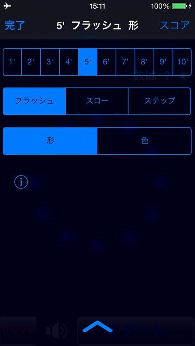 フラッシュ方式は図形が一瞬しか表示されないので上級者向けです。スロー方式は表示される時間がフラッシュ方式より長くなっていて、ステップ方式は好きなだけ表示することができます。