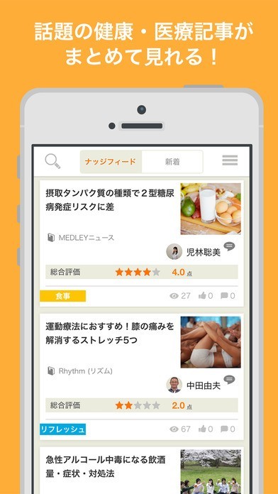 「HEALTHNUDGE」では医療やメンタルといった健康についての記事を専門家が解説、注釈や詳しい説明を見ることがで可能です。19のカテゴリから自分の気になる記事を選べる!カテゴリフォローや専門家個別フォローも可能、気になる記事を通知で知らせてくれます。ダイエットのカテゴリをタップでフォローすれば、最新情報が届く!痩せたい女子にピッタリ、専門家が解説する方法で効率よくダイエットが行えます。気に入った記事はいいね!をタップ、コメントを入力すればユーザー同士の交流も可能です。また、いいね!数を見ることでオススメ記事がわかるので、読む記事選びの参考にもなります。
