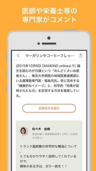 たくさんの健康に関する情報をみれるだけではなく、それを専門家が解説してくれる