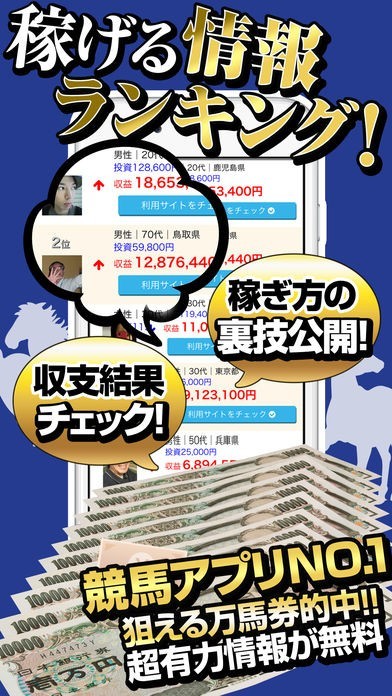 実際に稼いでいる人の収入を公開しており、額をランキングで確認できます。プロの予想や裏技を見ることができるので、レースに勝ちたい時に。読んで予想を立てて、勝てる確率をあげましょう。