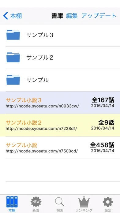 フォルダを作り、ダウンロードした小説を分類して整理できます。