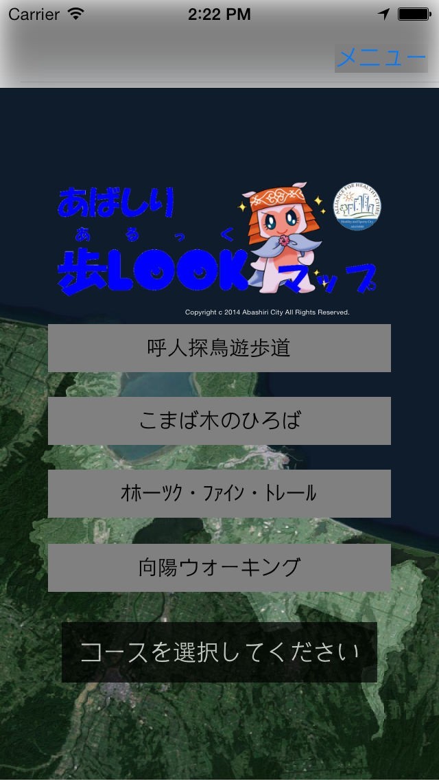 App Storeより引用網走市内のランニング&ウォーキングコースをガイドするアプリ「あばしり歩LOOK(あるっく)マップ」です。