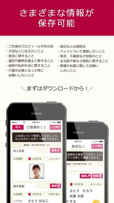 雑誌『はいから』の編集部が作った、遺言などの大事な情報をしっかり管理しつつ、伝えたい人には簡単に遺せるアプリ