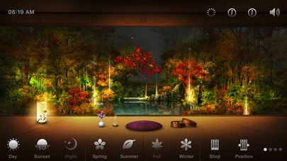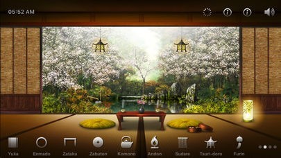 日本の温泉旅館をテーマにしたアプリとなっていて、本物の温泉旅館に来たかのような部屋からみえる風景や、ししおどしや雷の音などを楽しむことが出来るようになっています。