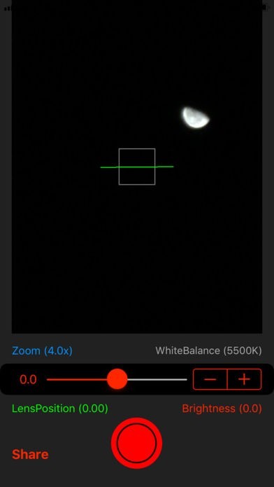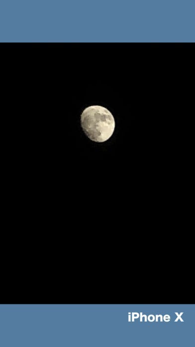 遠くにある月をズーム倍率を使って、月を大きく好みの大きさに写すことができます。スライダーを使って微調節していくと、夜空とのバランスを取りやすくなります。+と-をタップしても調節可能です。