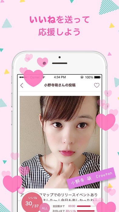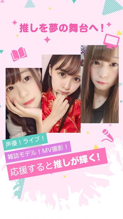 デビューしたてや、売れてないアイドルをあなたが引き上げていくアプリです。応援すればするほどメディアに露出するチャンスが増えていきます。また、あなた自身も様々な特典を得ることができます。
