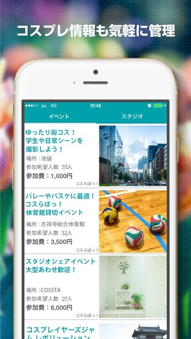 コスプレファンのためのSNSアプリ「コスらぼっ!」のスクリーンショット