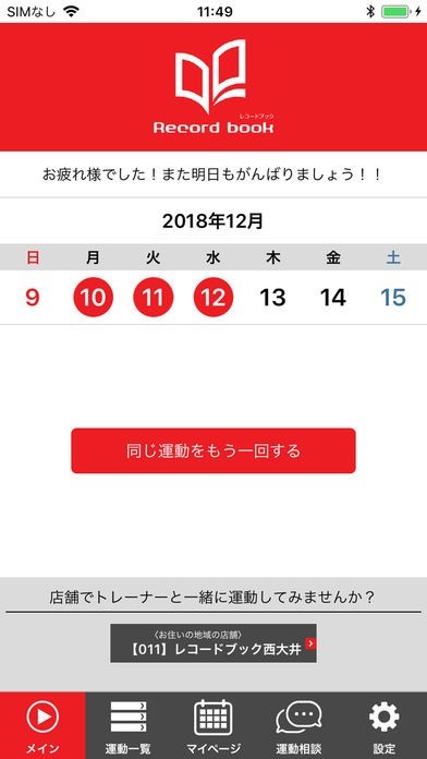 ・レコードブックトレーナーへの運動相談が可能なメッセンジャー機能を搭載