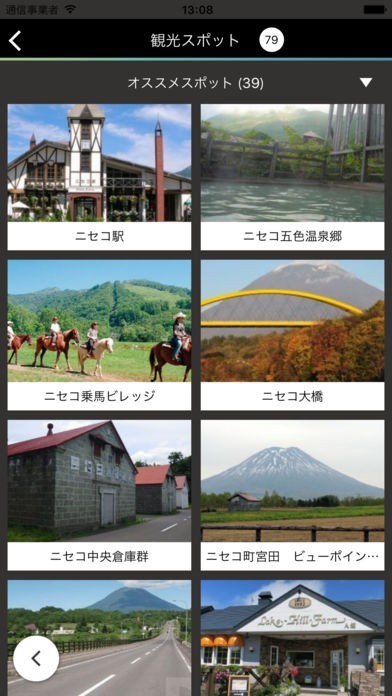 ①ニセコエリアの観光スポット(おすすめスポット・ショップ/レストラン・ホテルなど)が確認できます。