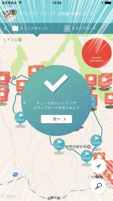 ④チェックポイントに近づくとレーダーの色が変わり、スタンプがもらえます。