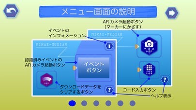 ・本アプリは、あらかじめ弊社クラウドサービスに登録した画像(マーカー)にカメラをかざすと、画像の上に動画映像など様々な情報を表示して見る方々に全く新たな驚きと感動を与える事ができます。