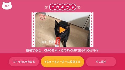 ペットフードメーカー「いなば」の、おなじみの商品をネコに食べさせる映像と、クセになるミュージックを、スマートフォンでユーザーの愛するネコを被写体にして撮影できます。