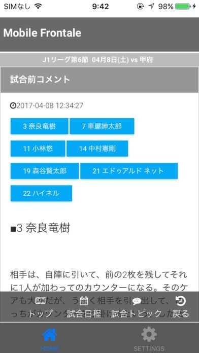 試合情報やスタメンなど、フロンターレ情報を随時更新してくれる