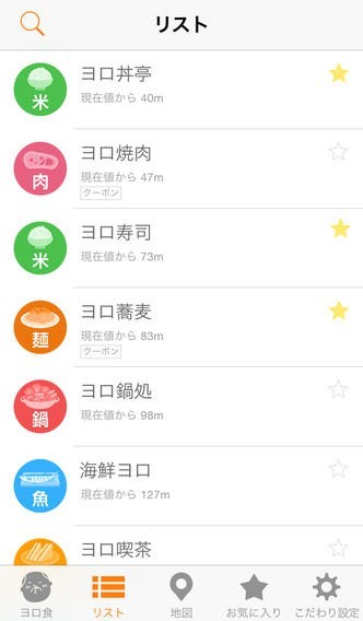 現在地からの距離だけでなく、クーポンの有無も教えてくれる!