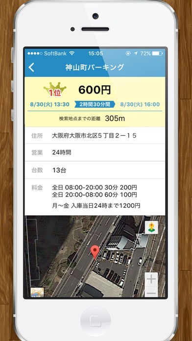 一番安い駐車場に停めたいときに、安い順に一覧で出てくるので損をしません。駐車場探しの達人になれます。