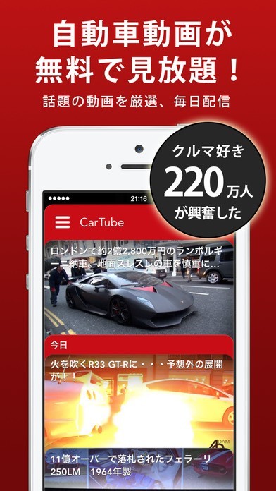 簡単な操作で趣味に関する動画を楽しめる、CarTube [ カーチューブ ]