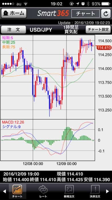 チャートのテクニカル分析だけでなく直接注文も可能となっているリアルタイムチャート機能