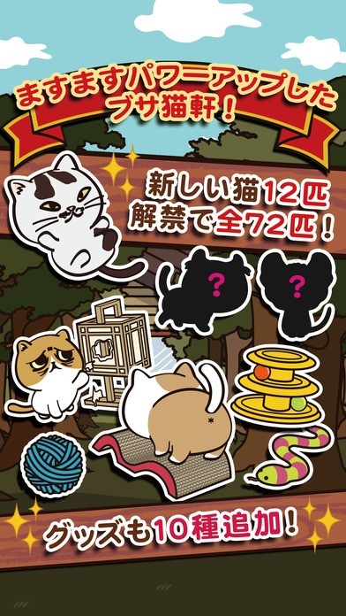 「注文の多いブサ猫軒」は、ブサ可愛い猫を集めてコレクションしていくカジュアルゲームです。 「遊んで!」「撫でて!」など猫からの注文があるので、その望みをかなえると猫が満足してくれます。 操作は簡単でスマホをタップ、スライドするだけなので誰にでもできます。 猫を満足させられると成功となり、コレクションに追加されていきます。 猫の種類は合計で72種類もいるので長く遊べて楽しめる癒しゲームとなっています。 たくさん猫の要望に応えることでレベルが上がり、新しい猫の解放もできるようになります。
