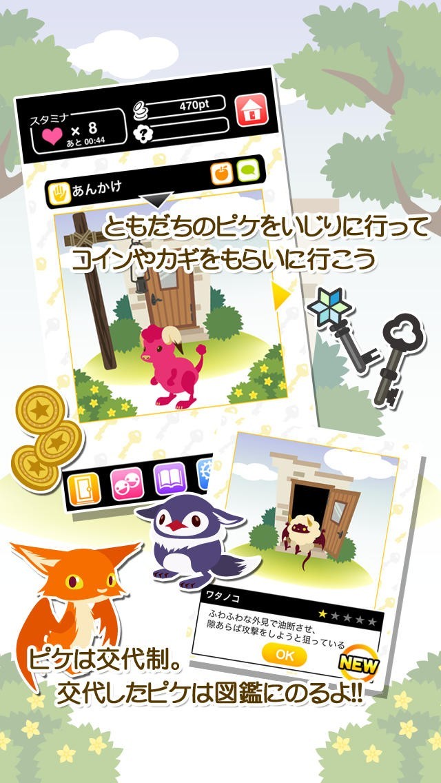 ピケのくれる鍵がゲームのポイント、ユーザー間のコミュニケーションにより多くのピケと出会える仕様が魅力
